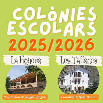 Oferim colònies escolars per a escoles a les nostres cases de colònies Les Tallades (Osona) i La Figuera (Castellnou de Bages).